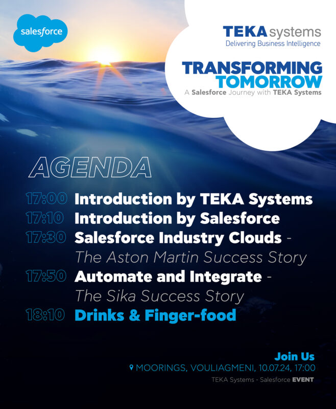 Pleased to have organized with Salesforce the event “Transforming Tomorrow – Unlocking Success Through Innovation” on July 10th at Moorings in Vouliagmeni, Greece.